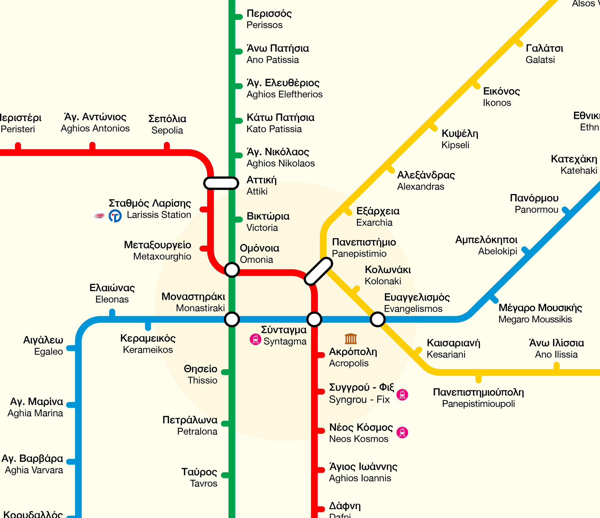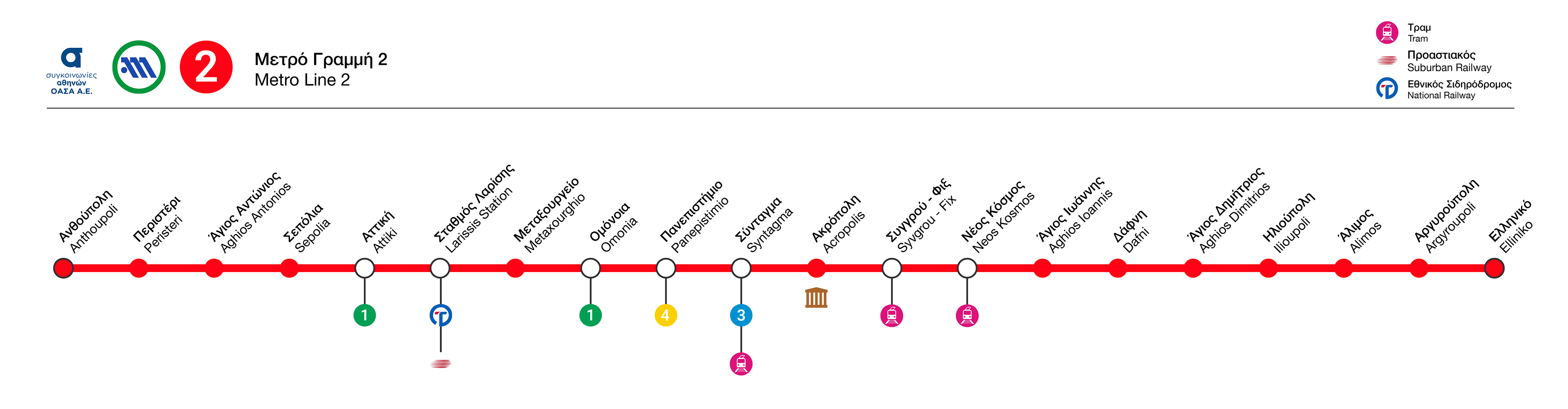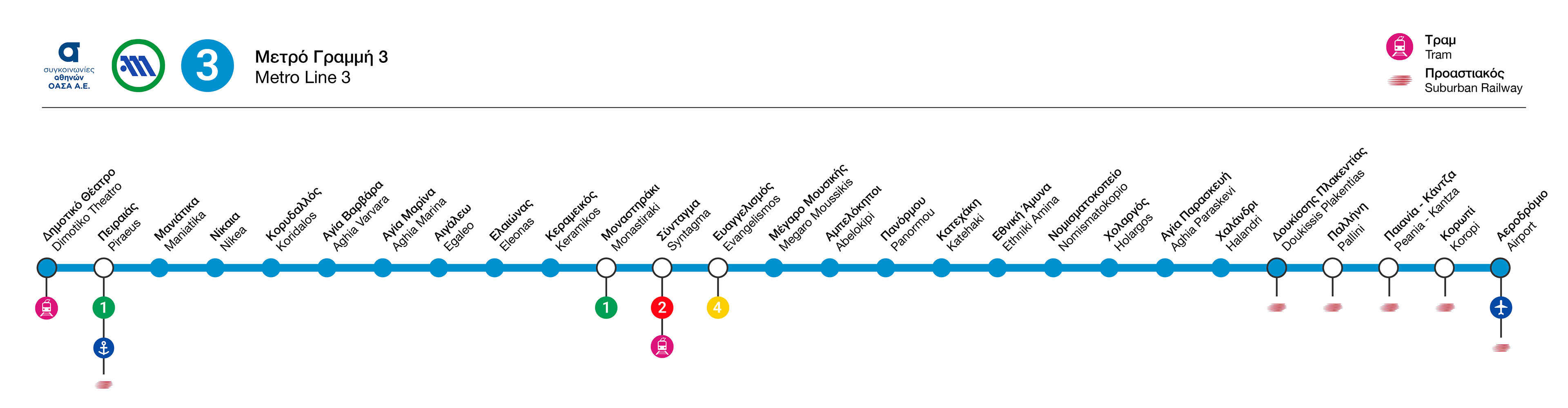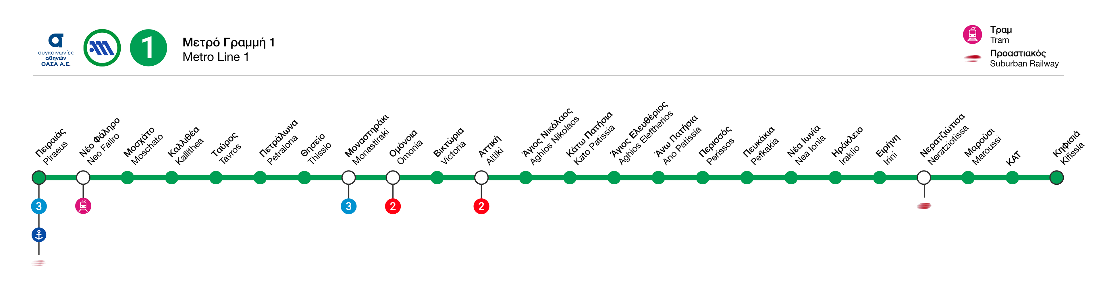 Regarding the iconography, the latest Athens Transport rebranding included icons for the tram line, which were adopted in this proposal to reinforce coherence with the overall branding. The Suburban Railway icon was also used alongside the Hellenic Railway’s, based on on-site research showing that both logos are actively used, depending on the railway line.