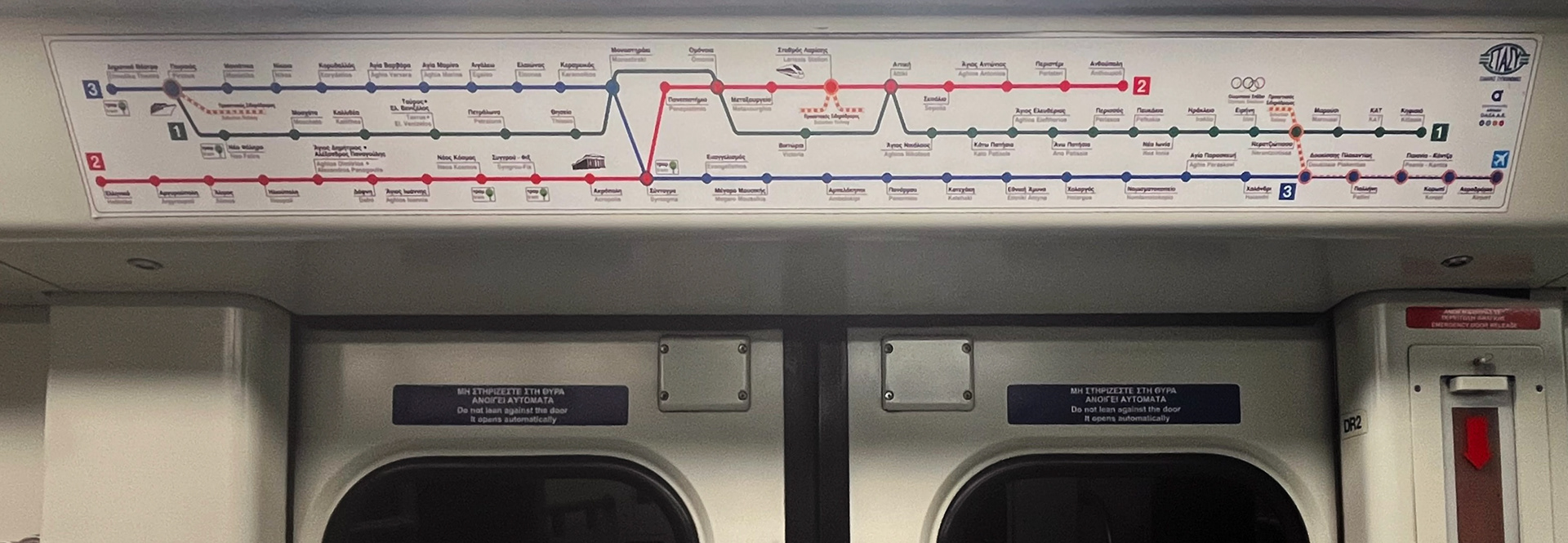Thirdly, the coexistence of Greek and Latin alphabets further constrains space and reduces legibility (image 3). Station names often become cramped or abbreviated, making them harder to read at a glance. This not only slows down navigation but also increases cognitive load, particularly for visitors or passengers unfamiliar with the network, creating a less intuitive and more stressful transit experience.