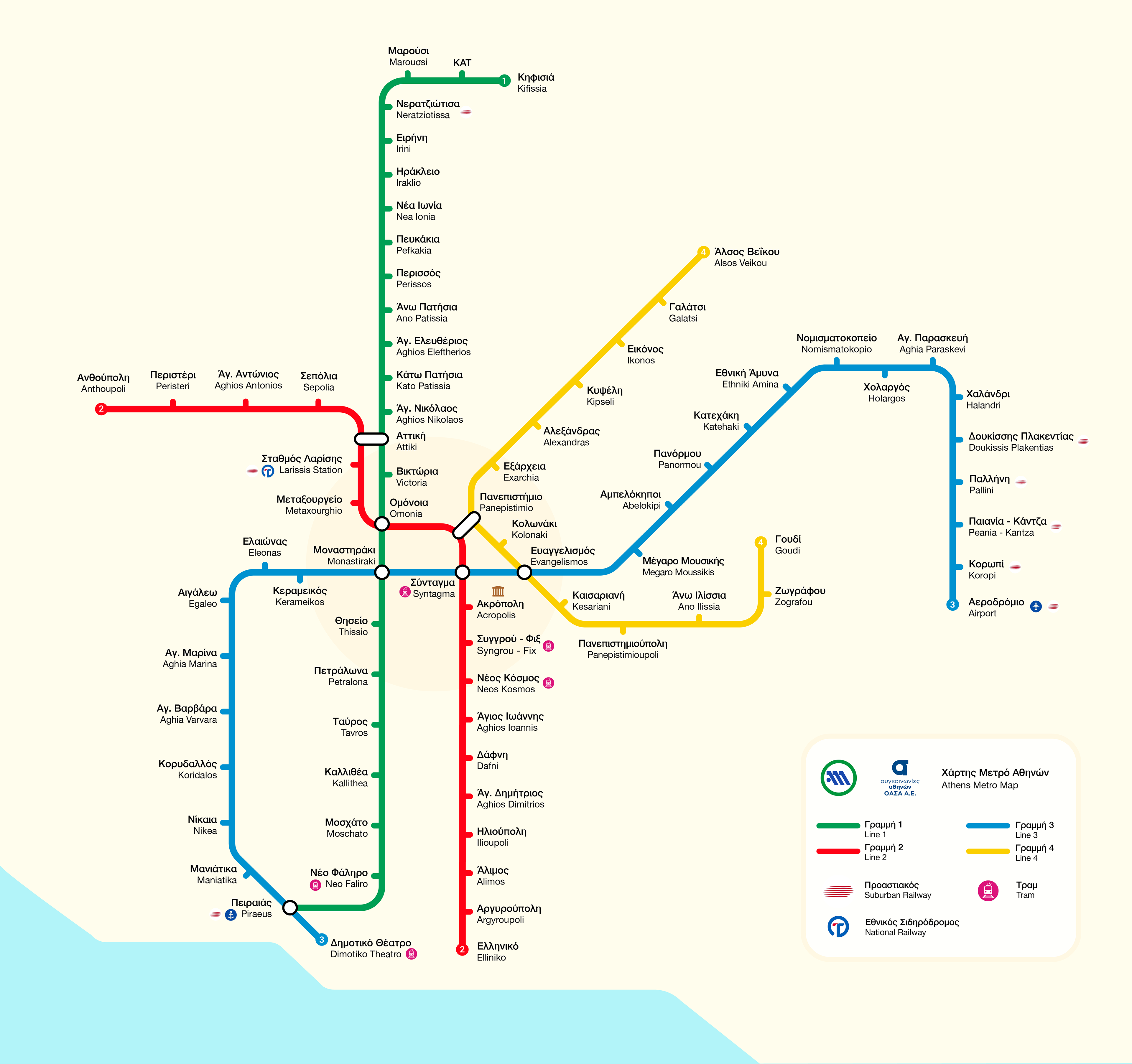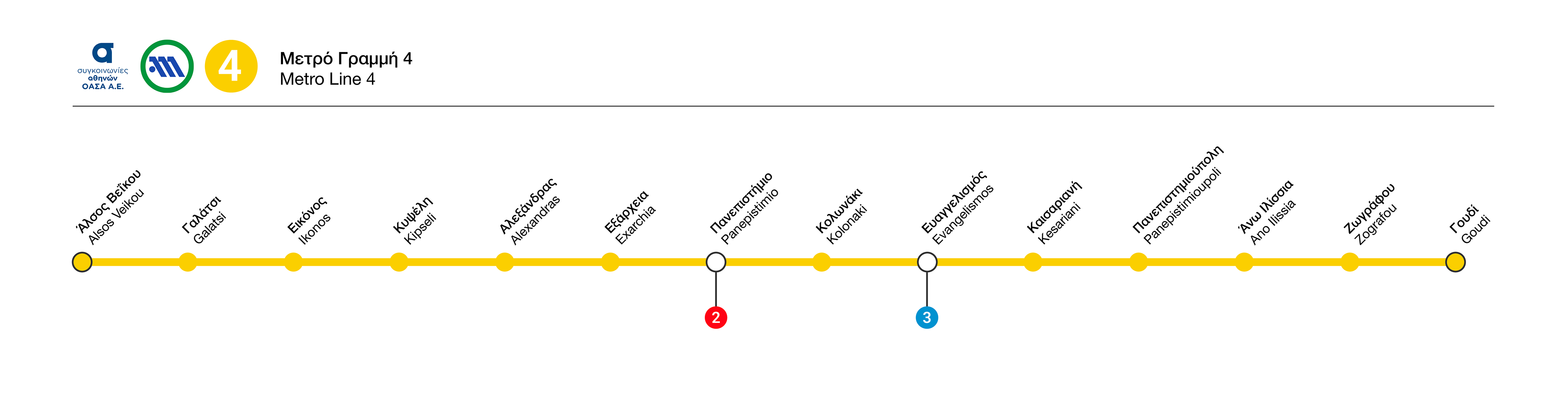 The first phase of Line 4, “Alsos Veikou – Goudi,” has been included, while future extensions have been considered and can be easily incorporated without disrupting the simplicity of the design.