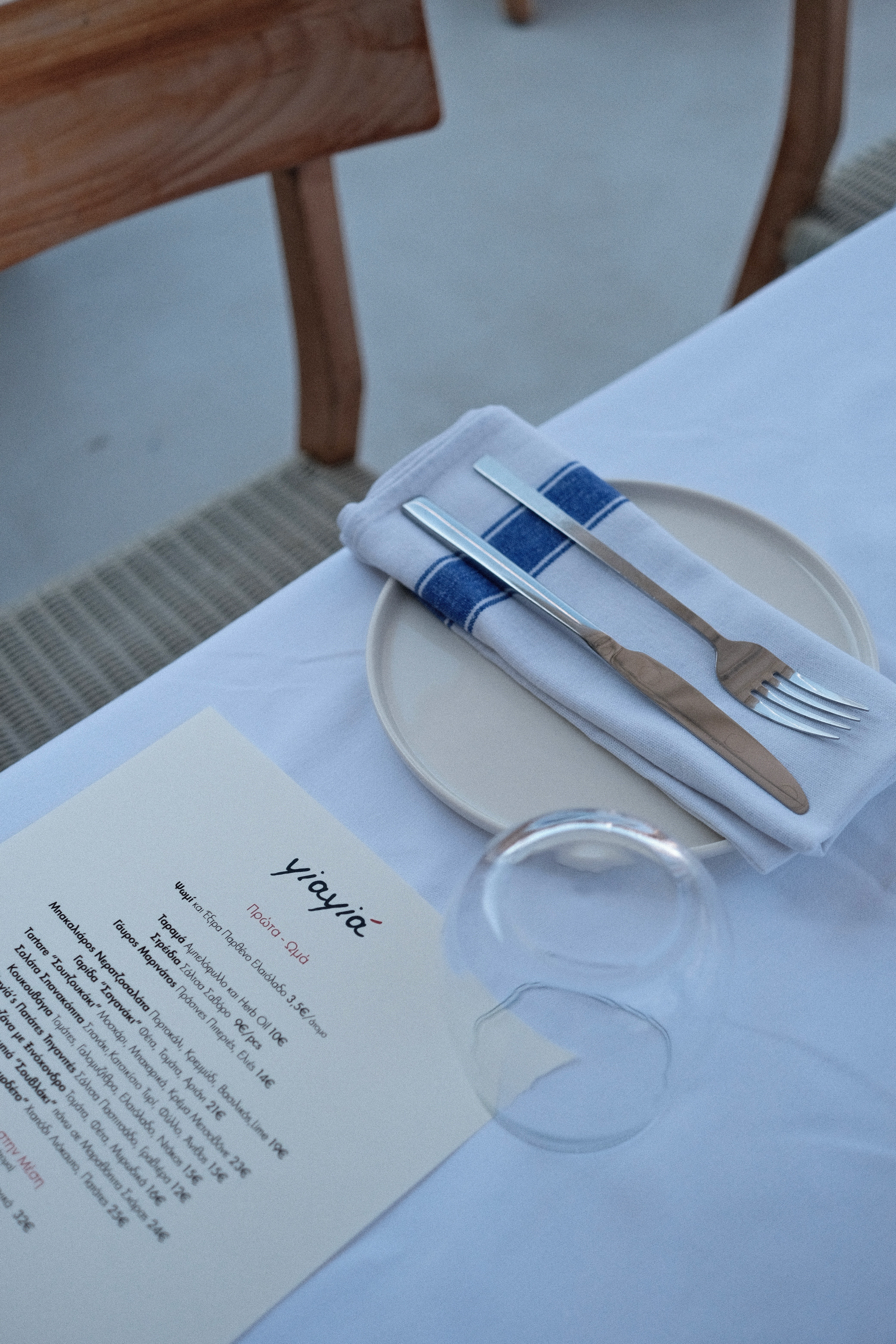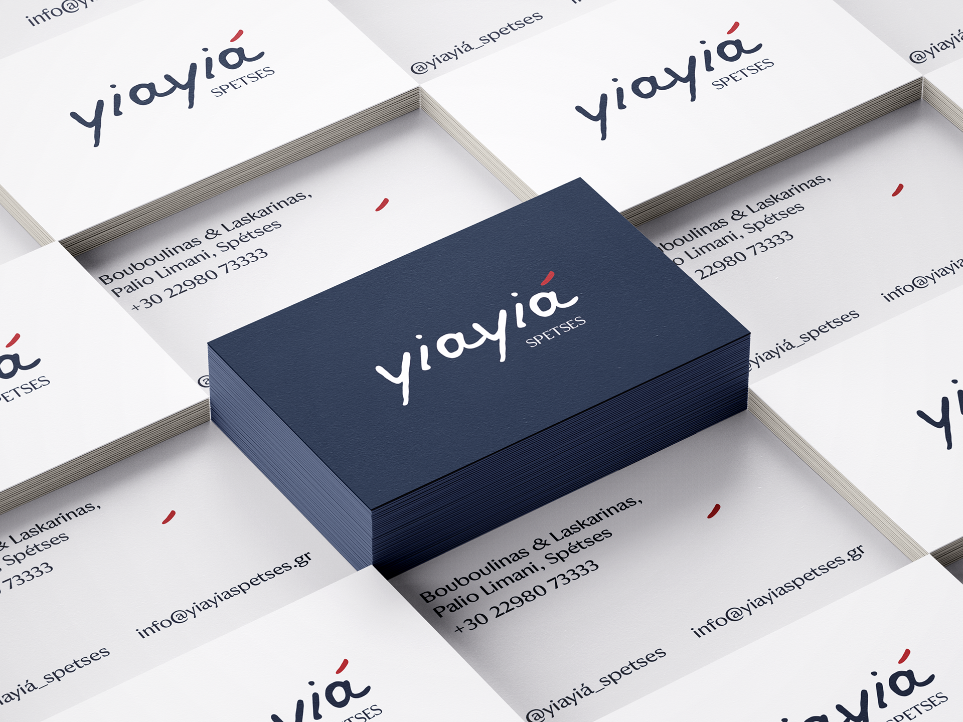I was commissioned to design the logotype for a new restaurant on the island of Spetses, called yiayiá. The owners wanted a visual identity that captured the island’s atmosphere—a blend of Greek and French gastronomy. While the name yiayiá means “grandmother” in Greek and evokes tradition, the brief called for a fresh and unconventional approach to create a striking contrast.